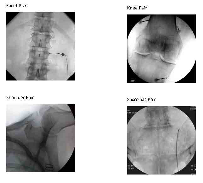 • Fluoroscopic-guided spine joint injections - helpful for spine joint arthritis or spine joint trauma.