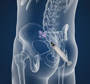 Depiction of a left sacroiliac joint injection